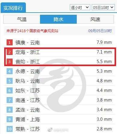 【10:32】浙江这几个地方登上全国降水和风速排行榜