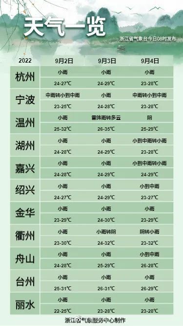 5日前受台风外围和弱冷空气影响,浙江省降水天气增多, 明天沿海地区部分中到大雨; 沿海海面今起阵风9级,4到5日10到12级,局部超过13级。